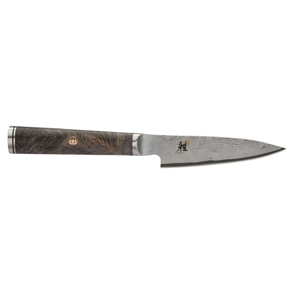 Black Paring Knife, 3.5″, 133-layer micro-carbide powdered MC66 steel blade with Damascus pattern, D-shaped black ash handle, made in Japan