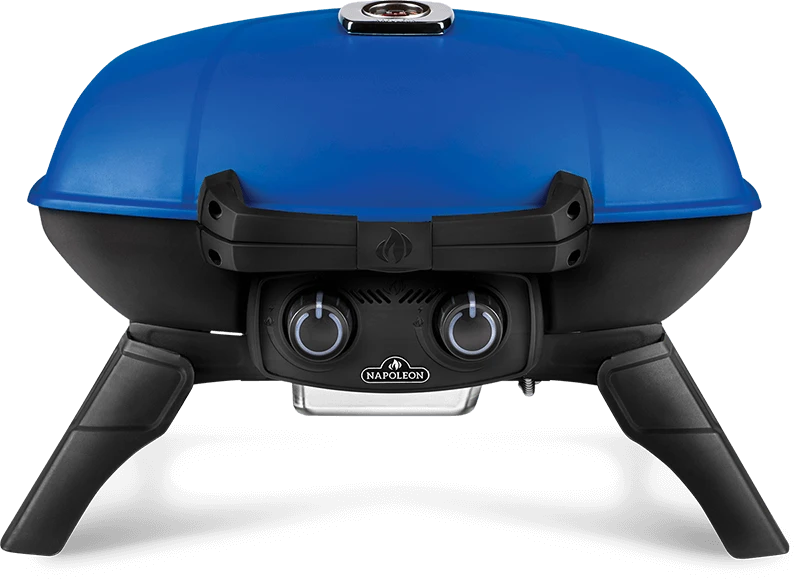 The stylish red Napoleon TravelQ™ 285 Portable Propane Gas Grill has set a new standard in portable grilling excellence. Don’t let the small size fool you; this grill boasts 285 square inches of total grilling area. That means you can grill up to 17 large hamburgers at once or a couple of small chickens or roasts thanks to the high-top cast aluminum lid. Two, individually controlled burners provide precise temperature control. You’ll know it’s a Napoleon with the iconic WAVE™ cooking grids for those distinctive sear marks. The porcelain coated enamel grids will season to a nonstick surface just like a cast iron frying pan. Replace one set of grids with the griddle and caramelize onions or cook breakfast. This grill features a cast aluminum body to keep it light and portable and the legs fold in for compact storage. The removable grease tray slides out for easy cleaning. The TravelQ™ is a perfect way to take gourmet grilling on the go.