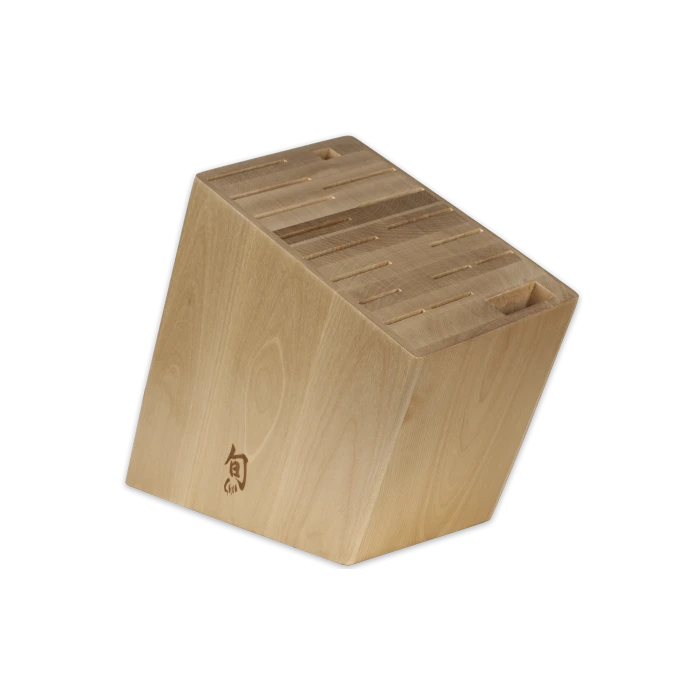 The Birch 17-slot block offers room for your expanding Shun collection. This wood block works beautifully with a variety of Shun series styles. This handsome block features 17 slots, including one to accommodate a honing steel and one for a handy pair of kitchen shears.