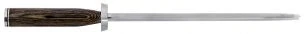 While fine European knives can require honing after each use, Shun’s harder steel means you can hone just once a week or so, depending on your level of use, of course. The Shun Premier Combination Honing Steel has an angle guide built into the handle, so you can easily hone your knives at the correct 16° Shun angle. The premium walnut PakkaWood handle provides a secure grip and matches the handles of the rest of the beautiful Shun Premier line.